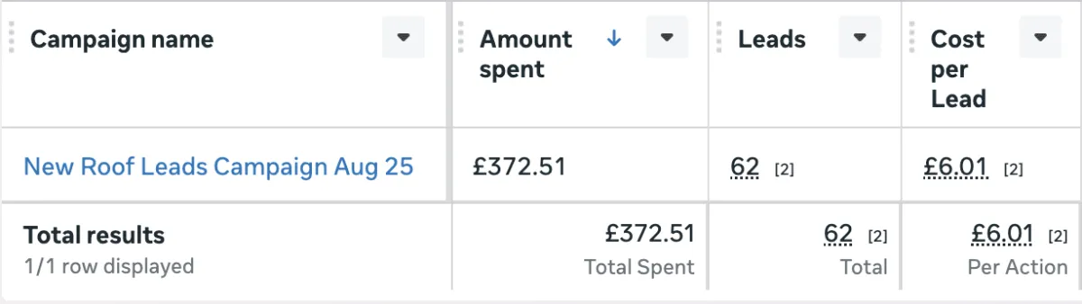 This roof cleaning campaign generated £4,950 - that's a 1,328% return on ad spend!